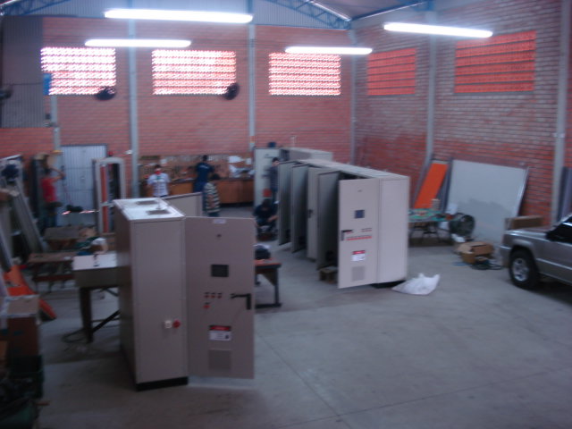 V. Interno Painel Secador Passagem Telhas Automatizado. Vista frontal Painel Secador Passagem Telhas