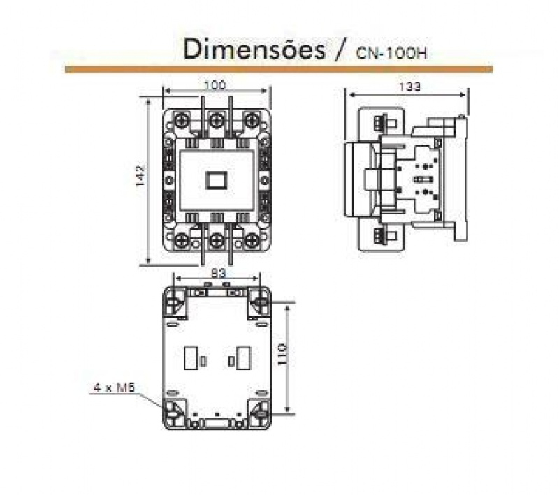 Produtos / Contatores / Contatores Metaltex / Contatores Tripolares CN-100 / Contator Tripolar CN-100-E5-3A2a2b