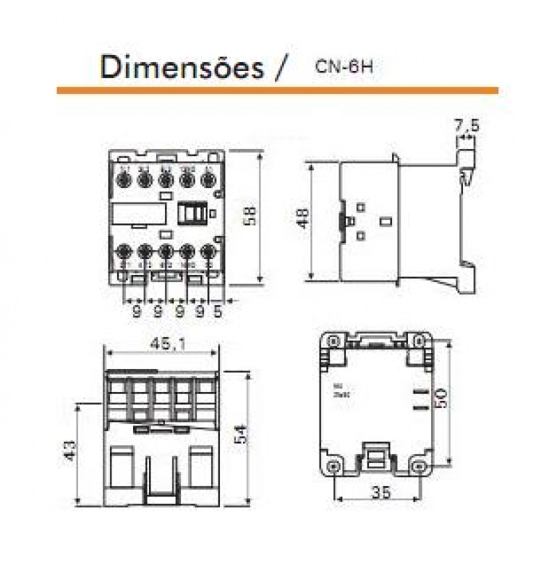 Produtos / Contatores / Contatores Metaltex / Contatores Tripolares CN-6 / Contator Tripolar CN-6H-E6-3A1a