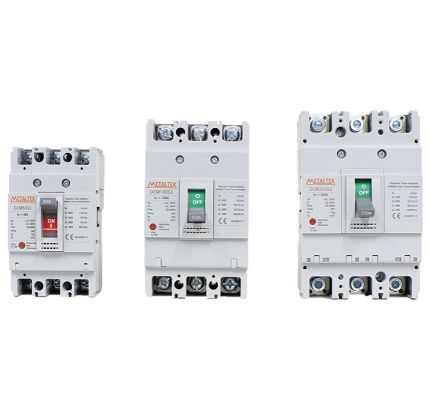 A série DCM de disjuntores em caixa moldada (MCCB) tem 6 modelos de tamanhos diferentes e atende a faixa de corrente desde 10 até 800A. Dispõe de vários modelos de acessórios para montagem interna ou externa a caixa. De acordo com a norma IEC60947-2. Capacidade de interrupção de até 100kA. Corrente de disparo magnetico fixa 10xIn.