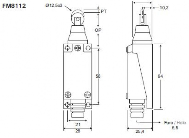 Produtos / Chaves Fim de Curso / Chave Fim de Curso Metaltex / Família FM8 / Fim de Curso FM8112
