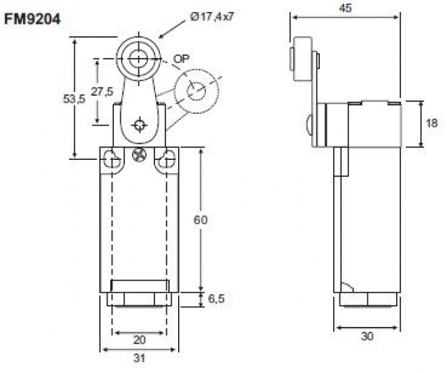 Produtos / Chaves Fim de Curso / Chave Fim de Curso Metaltex / Família FM9 / Fim de Curso FM9204