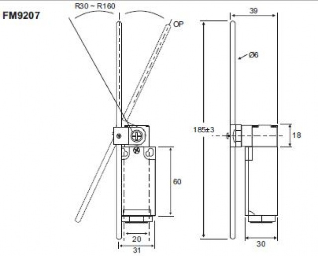 Produtos / Chaves Fim de Curso / Chave Fim de Curso Metaltex / Família FM9 / Fim de Curso FM9207