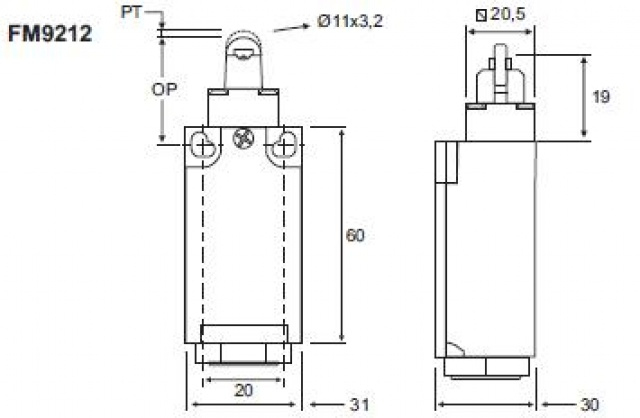 Produtos / Chaves Fim de Curso / Chave Fim de Curso Metaltex / Família FM9 / Fim de Curso FM9212