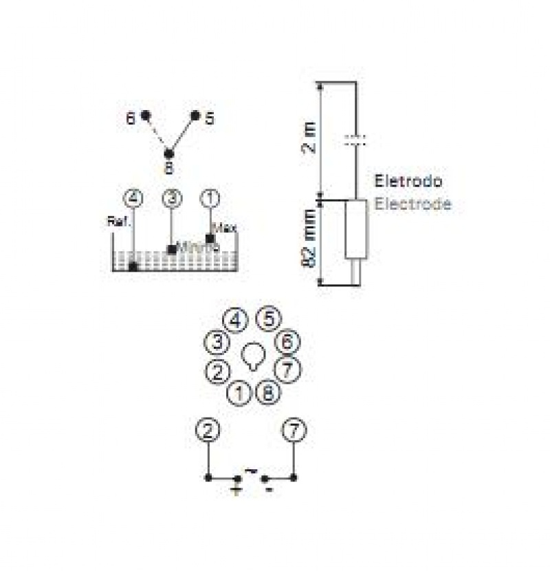 Relé eletrônico que detecta os níveis mínimo e máximo do líquido, ligando e desligando dispositivo externo de controle, geralmente uma bomba